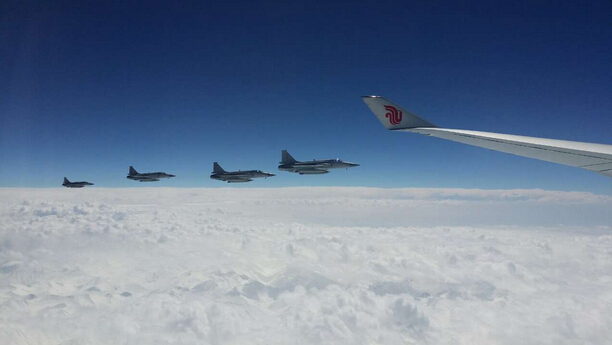4月20日,巴基斯坦出動8架“梟龍”戰機組成編隊,為習近平的專機全程護航。