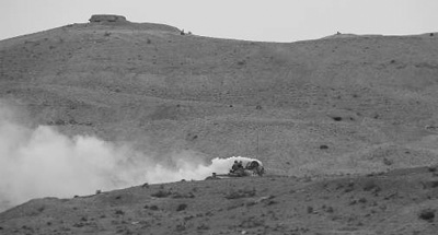 “紅軍”炮兵火力對敵前沿裝甲目標(biāo)實(shí)施摧毀。程成攝