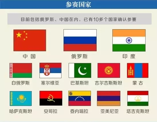 俄羅斯國際軍事比賽始于2013年。尤其是2014年8月舉辦的“坦克兩項”和“航空飛鏢”國際競賽,對提升俄軍訓練水平、深化俄軍事外交、擴大俄國際影響都產生了積極作用。在此基礎上,2015年俄羅斯國際軍事比賽又向前邁出了一大步,比賽項目明顯增多,而且在俄10個州同步舉行。目前包括俄羅斯、中國在內,已有白俄羅斯、印度、巴基斯坦、吉爾吉斯斯坦、蒙古、哈薩克斯坦、安哥拉、委內瑞拉、亞美尼亞、塔吉克斯坦、塞爾維亞等10多個國家確認參賽。