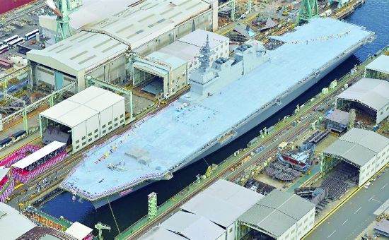二戰(zhàn)中,日本海軍“加賀”號(hào)航母不僅大肆轟炸中國(guó)沿海,而且也對(duì)亞太多國(guó)犯下累累罪行,最終在中途島海戰(zhàn)中葬身大海。73年后,日本海上自衛(wèi)隊(duì)最新、最大的一艘戰(zhàn)艦再度冠以“加賀”的名字。據(jù)日本《朝日新聞》27日?qǐng)?bào)道,當(dāng)天被命名為“加賀”號(hào)的“出云”級(jí)直升機(jī)航母二號(hào)艦舉行了隆重的命名下水儀式(題圖)。