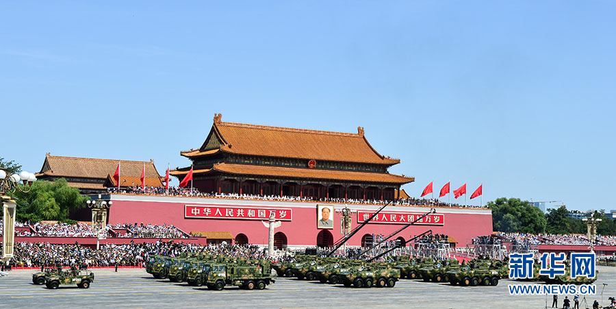 裝備保障方隊接受檢閱。 新華社記者 王慶欽 攝
