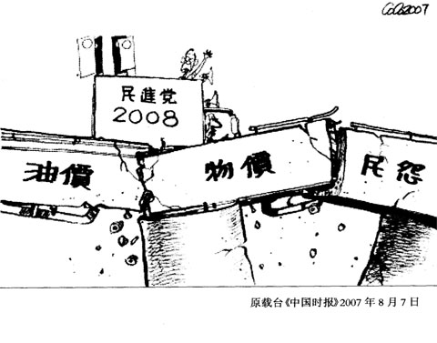 結果不證自明。臺灣在此起彼落的政治拼斗中進退失據,經濟成長趨緩,臺灣人所得停滯,失業率攀高,貧富差距加大,M型社會在臺灣不再是學說而是現實,官方炮制的所有數據都被當笑話,民間最具體的感受,反映在消費意愿的低落,更反映在那間歇卻不斷發生的民眾燒炭自殺上。臺灣浪費了二○○六,也虛耗了二○○七,這期間所付出的代價,恐怕已經不是三年五年就能夠彌補的回來了。