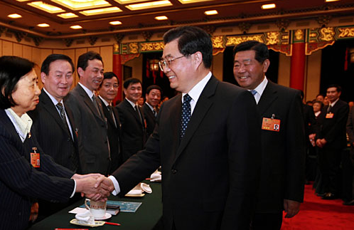 胡錦濤4日下午看望參加全國政協(xié)十一屆一次會議的民革、臺盟、臺聯(lián)委員,就對臺政策發(fā)表了講話。(圖片來源:新華社)