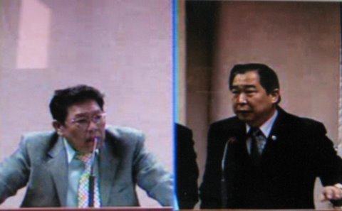 帥化民(左)不滿鐽震案只查洩密,“國防部”軍法司長吳泰然(右)多次無言以對。(中評社圖)