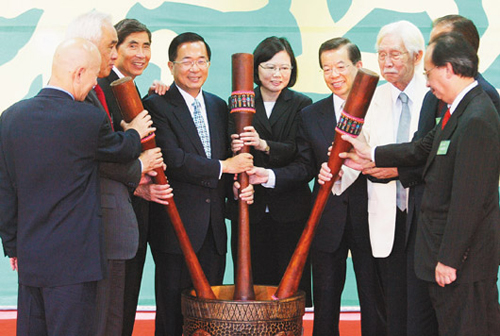 民進黨5月21日舉行黨主席交接典禮,全黨營造團結氣氛,但“四大天王”的蘇貞昌和呂秀蓮都缺席。謝長廷呼吁“不要到法庭才團結”,陳水扁則連問四次“黨有團結嗎”?(圖片來源:臺灣《聯合報》)