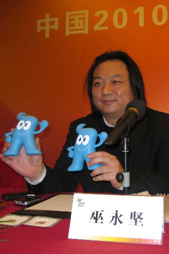 來自中國臺灣的設計師巫永堅,和他設計的2010年上海世博會吉祥物——海寶。