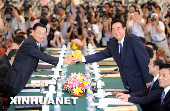 去年6月12日,上午9時(shí),在北京釣魚臺(tái)國賓館,海協(xié)會(huì)長陳云林、海基會(huì)董事長江丙坤的手緊緊握在一起,F(xiàn)場(chǎng)閃光燈閃成一片,200多位記者記錄了兩岸兩會(huì)恢復(fù)制度化協(xié)商的歷史性畫面。