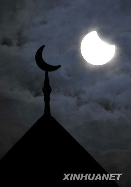 7月22日8時33分,在銀川市上空拍攝的日食。當日,我國境內將出現日全食景觀。(圖片來源:新華社)