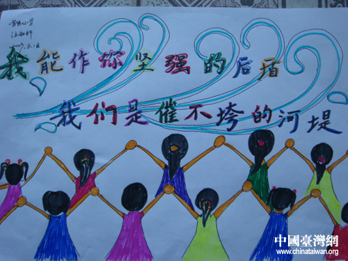 四川省廣元市朝天區(qū)曾家小學學生汪雨軒的畫作,為臺灣受災同胞祝福。(來源 四川臺辦)