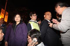 當(dāng)學(xué)生團(tuán)體失控攻占行政院時(shí),警方在勸阻無(wú)效必須強(qiáng)制驅(qū)離時(shí),又見(jiàn)民進(jìn)黨的前后任主席赴現(xiàn)場(chǎng)。(圖片來(lái)自臺(tái)媒)
