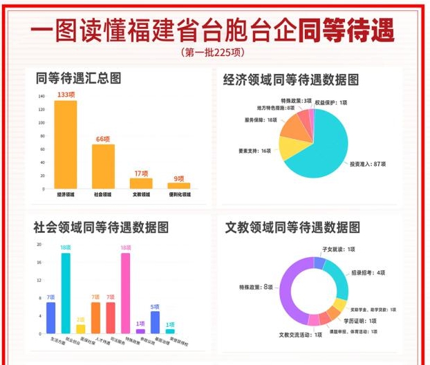 一直以來,大陸始終秉持“兩岸一家親”理念,率先同臺灣同胞分享大陸發展機遇,在更大范圍、更寬領域為臺胞臺企提供同等待遇。同時,大陸積極推動兩岸交流合作提質增效,助力臺胞特別是臺灣青年在大陸追夢、筑夢、圓夢。“推進兩岸關系和平發展和祖國統一”是“十四五”規劃和二〇三五年遠景目標的重要組成部分,其中一項就是要支持福建探索海峽兩岸融合發展新路。而這份“225條”清單就是福建繼續率先同臺灣同胞分享發展機遇,為在閩臺胞臺企提供更多同等待遇,共建第一家園的有力體現。