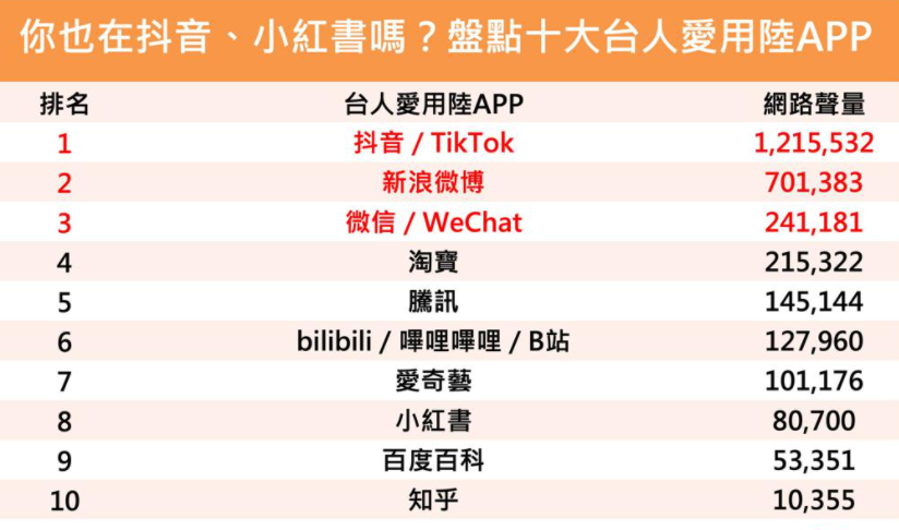 近年來,不少臺灣同胞在日常生活中開始使用大陸APP,從社交、購物到影音平臺,內容十分豐富。最近,島內一家網站通過網絡調查,評選了島內網友愛用的十款大陸APP。公布的榜單顯示,位列前三的依次為抖音、新浪微博、微信,另外七個則是淘寶、騰訊、嗶哩嗶哩、愛奇藝、小紅書、百度百科和知乎。上述十款在大陸幾乎是裝機必備的APP,如今同樣也是島內網友青睞的熱門應用軟件。