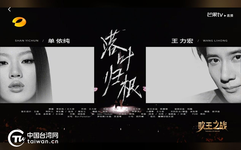 單依純與王力宏合唱歌曲《落葉歸根》。(中國臺灣網 發)