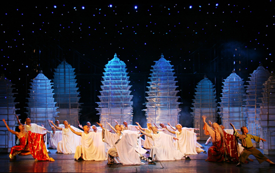 作為《功夫傳奇》元老級創作人員并一直伴隨該劇至今,無論是天創國際演藝執行董事曹曉寧,還是公司副總經理高歷霆,在說到該劇時都會提及一部片段展示式的演出劇目《少林魂》,該劇為《功夫傳奇》奠定了基礎。從《少林魂》發展為如今歷經十年演出而不衰的《功夫傳奇》,“禪”味慢慢析出,已從當初單純展示功夫文化提升到讓人感受功夫文化里更深一層蘊含的傳統哲學意蘊。