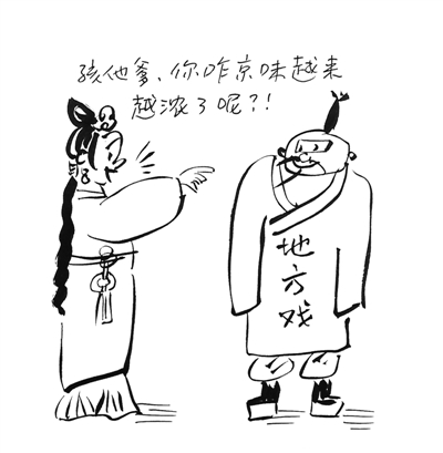 的確,絕大多數地方戲都是在近、現代興起,處于急切謀求發展的“生長期”階段。他們以開放的姿態向外界汲取營養,包括向比較成熟的京昆學習也沒有錯,但音樂應該表現戲曲的內在特征,而絕不能以學習為理由實行簡單的拿來主義,直接運用京劇曲牌,使用京劇鑼鼓,甚至套用京劇的唱腔、板式……導致地方劇種“京劇化”。