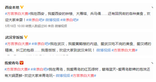5月20日,是網絡時代的“表白日”,也被網友們戲稱為“強行塞狗糧的一天”。最近幾天的微博上,“來表白吧”“方言表白大賽”“520”等,都成了熱門話題,有的表白自己的愛人,有的表白自己的家鄉,還有的表白自己喜歡的明星。