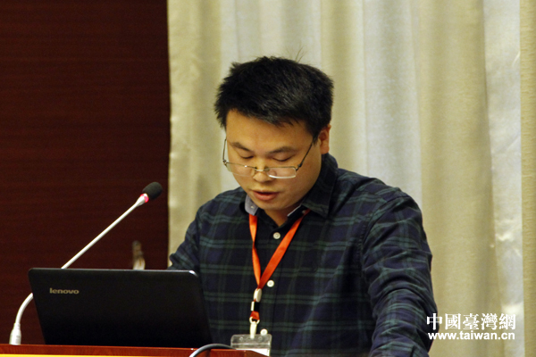 海南臺灣研究會研究部副主任鄔恒利在論壇發言。(中國臺灣網記者 李杰 攝)