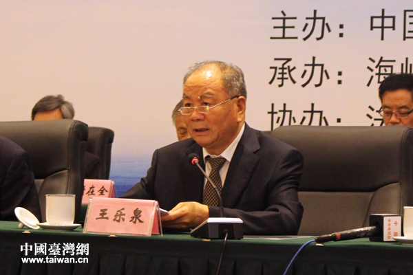 中國法學會會長王樂泉在致辭中指出,兩岸法學法律界的交往是兩岸交流的重要組成部分。30年來,兩岸法學交流合作取得豐碩成效,為服務兩岸經貿發展、增進人民福祉作出了積極貢獻,為加強兩岸執法司法協作提供了重要支撐,成為兩岸關系和平發展的重要保障。他強調,習近平總書記在會見中國國民黨前主席連戰時提出了“四個堅定不移”的主張,為新形勢下兩岸法學交流合作提供了基本遵循。他希望,兩岸法學法律界攜手同心、相向而行,為推動兩岸關系和平發展作出應有努力。一是要堅持深化兩岸法學交流合作的方向不動搖,增進理解、凝聚共識,培養推動兩岸關系和平發展的中堅力量;二是要堅持兩岸法學交流政治基礎不動搖,堅定不移維護“九二共識”,堅決反擊任何“法理臺獨”的分裂圖謀;三是要堅持服務兩岸同胞福祉的宗旨不動搖,針對兩岸經貿合作、人員往來以及同等待遇等相關法律問題加強研究,多提法律對策,多做法律服務。