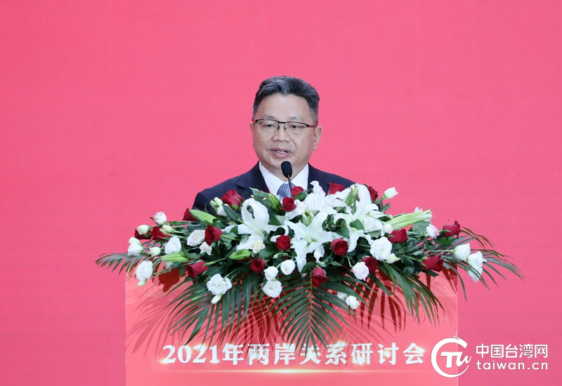 全國臺灣同胞聯誼會副會長楊毅周在2021年兩岸關系研討會上發言。(中國臺灣網 尹賽楠 攝)