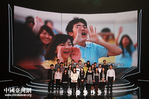 在頒獎晚會上,兩岸大學(xué)生合唱歌曲《我們的心》。(中國臺灣網(wǎng) 王偉 攝)