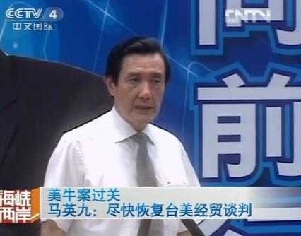 美牛案過關 馬英九:盡快恢復臺美經(jīng)貿(mào)談判
