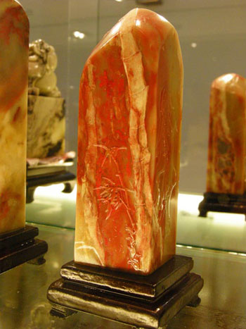 巴林石是一種葉臘石,因產(chǎn)于赤峰市巴林右旗而得名。石質(zhì)中含有多種化學成份,質(zhì)地潤澤細膩,斑斕多彩,微呈半透明,硬度適中,脆軟相間,據(jù)專家測定,巴林石色澤、成份與我國傳統(tǒng)雕刻原料壽山石、青田石齊名,在韓國、日本、印尼的葉臘石之上,可與寶石、瑪瑙媲美,是雕刻、鑲嵌的最佳原料,是中國三大采石基地之一。以巴林石為基礎(chǔ)建立的巴林奇石館,是巴林石品質(zhì)和藝術(shù)精品的集中展示地,巴林奇石館的主要特點是:一,品種全、花色多。館內(nèi)陳列著雞血石、黃凍石、牛角凍、羊脂凍、水晶凍、瑪瑙凍、五彩凍、桃花凍、金黃料、紅花石、五彩石、畫石和高嶺石等巴林石優(yōu)質(zhì)礦石20多個品種,花色近百種。其中雞血石和畫石最引人注目。二是巴林石作品題材廣泛,造型優(yōu)美,形象生動。雕件作品有反映草原特點的馬、牛、羊、駝,還有仿古器物,亭閣樓臺,花鳥蟲魚,詩詞書畫等大量精品佳作。三是雕刻手法精湛,繼承傳統(tǒng),推陳出新。巴林石雕在繼承傳統(tǒng)雕刻藝術(shù)的基礎(chǔ)上,借鑒吸收了國畫的工筆白描手法以及玉雕的色彩選擇,骨雕的鏤空技世,發(fā)揮鑿、鏟、雕、剔、鉆、拉等工藝精心雕刻,使創(chuàng)造出的作品形體清晰,層次分明,玲瓏剔透,栩栩如生。