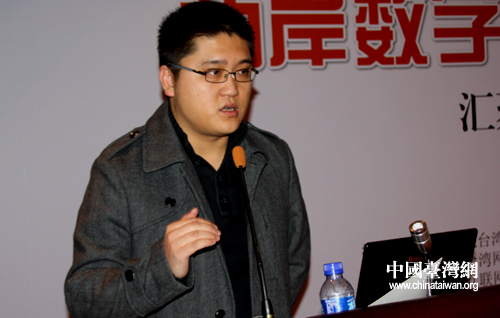趣游科技北京有限公司李威在兩岸數(shù)字內(nèi)容及產(chǎn)業(yè)孵化論壇上作主題演講(中國臺(tái)灣網(wǎng) 高斯斯 攝)