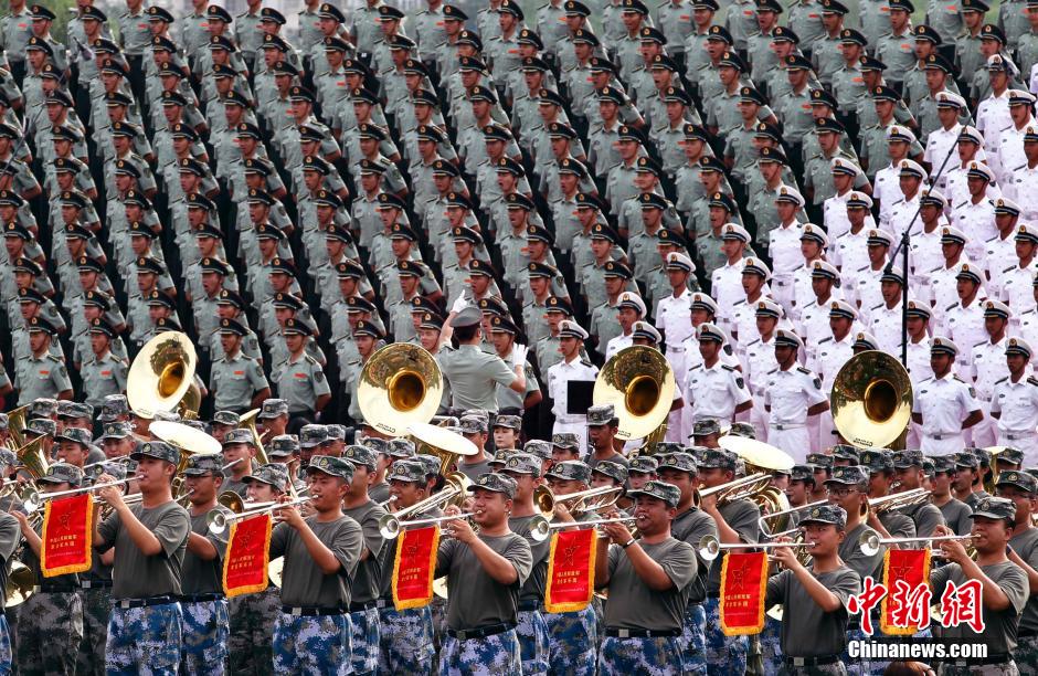 解放軍聯合軍樂團團長鄒銳日前透露,聯合軍樂團將在9月3日閱兵當天第一個進入閱兵場地,為紀念大會和閱兵提供“背景音樂”。聯合軍樂團由來自全軍55支專業、業余軍樂團(隊)的1000多名成員組成,擔負紀念大會開始全部合唱伴奏和閱兵全過程的音樂演奏任務。聯合軍樂團還有一個“新搭檔”——解放軍合唱團,這是中國閱兵史上首次組建合唱團參加閱兵儀式。