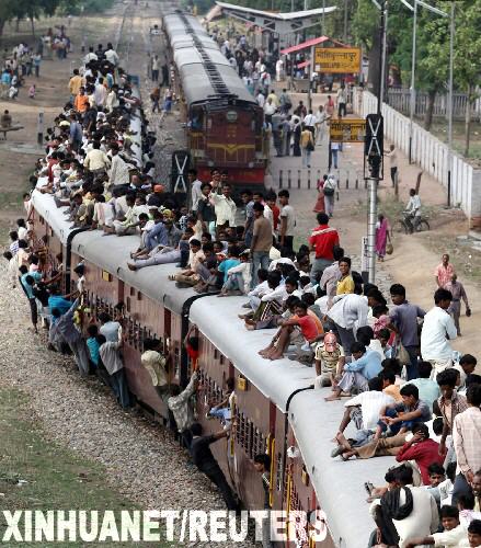 7月11日,在印度北方邦中部城市勒克瑙,當?shù)厝顺俗涣谢疖嚦鲂小.斕焓恰笆澜缛丝谌铡薄?新華社/路透