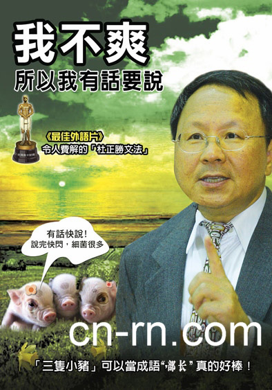 人民網11月19日電 “全民麻辣鍋”網站最近開設了“2005-2007臺灣奧卡斯獎--民進黨掌權之荒謬劇場”票選活動,以反諷、笑中帶淚的方式為民進黨頒獎。民進黨“四大天王”及扁妻皆成為網友的惡搞對象,通通上榜,并奪得各項“大獎”。