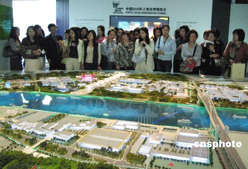 十月二十三日,常住上海的近百名臺商太太“組團”考察2010年上海世博會新規劃。這是上海世博會申辦成功后,滬上最大規模的“臺灣團隊”造訪上海世博局。臺商太太們來自滬上最知名的女臺胞社團“移居上海太太俱樂部”,她們相約為上海世博會當義工。 中新社發 許曉青 攝