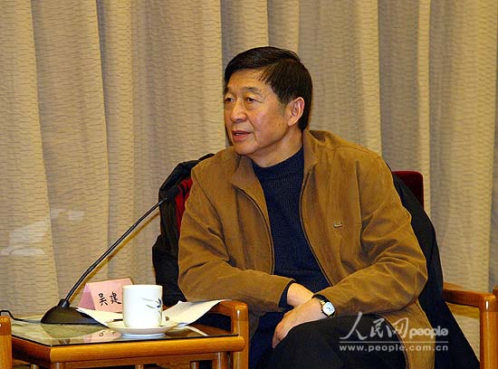 全國政協副秘書長兼新聞發言人、外交學院院長吳建民在座談會上發言。
