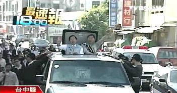 報(bào)道說,島內(nèi)“立委”選戰(zhàn)進(jìn)入倒數(shù),陳水扁沿著大街小巷拜票,為民進(jìn)黨“立委”候選人拉抬選情,支持民眾放鞭炮夾道歡迎,但還是有人有備而來,趁著陳水扁車隊(duì)經(jīng)過,高舉綠色的“倒”字標(biāo)語。