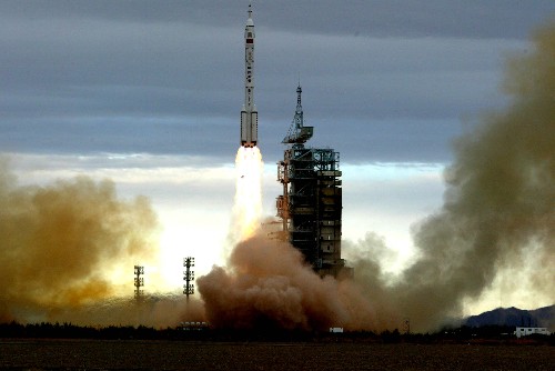 2005年10月12日,神舟六號在酒泉衛星發射中心發射成功。 新華社記者趙建偉攝