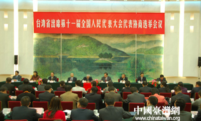 中國臺灣網1月12日消息 1月12日下午,臺灣省出席第十一屆全國人民代表大會代表協商選舉會議,在人民大會堂臺灣廳召開。120名協商選舉會議成員以無記名投票差額選舉的方式,選舉產生了13名臺灣省第十一屆全國人大代表。
