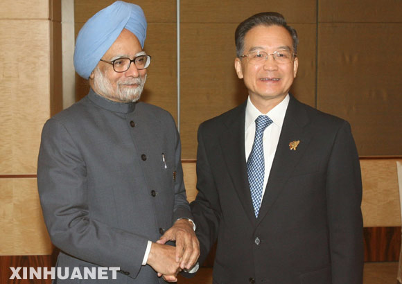 2007年11月21日,中國國務院總理溫家寶在新加坡會見印度總理辛格。 新華社記者 樊如鈞攝