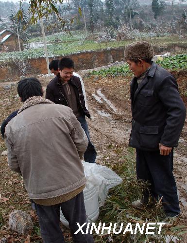 2月6日,李彬(中)在為永溫鄉災民送救災物資。34歲的貴陽市開陽縣永溫鄉紀委書記李彬,除夕之夜因操勞過度,突發腦溢血猝然病倒。經過兩次開顱手術后,截至記者發稿時,李彬仍處于深度昏迷狀態,生命垂危。新華社記者周之江攝