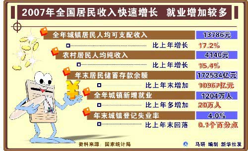 圖表:2007年全國居民收入快速增長 就業增加較多 新華社發