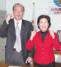 前臺聯黨“立委”錢林慧君(右)與擔任臺聯黨中央黨部秘書長的丈夫錢橙山(左)表態力挺馬英九。(臺灣《中國時報》圖片)