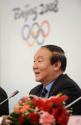 3月19日,北京奧組委執行副主席蔣效愚在回答記者提問。當日,北京奧組委在北京奧運新聞中心舉行2008年奧運會火炬接力新聞發布會。 新華社記者 羅曉光 攝