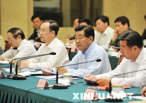 中共中央政治局委員、國務院副總理、國務院抗震救災總指揮部副總指揮回良玉在座談會上講話。全國政協副主席、中共中央統戰部部長杜青林出席座談會。