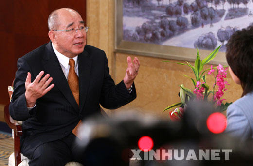 5月30日,中國國民黨主席吳伯雄在上海虹橋迎賓館接受大陸媒體集體采訪。新華社記者 龐興雷 攝
