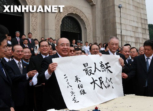5月27日上午,中國國民黨主席吳伯雄率中國國民黨大陸訪問團在南京拜謁中山陵。這是吳伯雄在完成拜謁中山陵儀式后,揮毫題詞“天下為公 人民最大”。新華社記者 龐興雷 攝