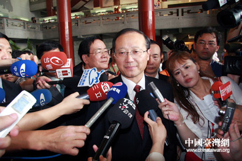 邵琪偉在臺北孫中山紀念館內受到兩岸媒體“圍攻”(攝影:李徽)