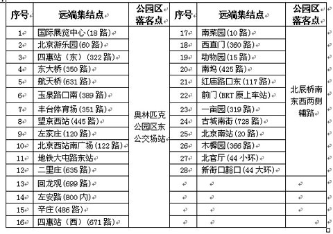 28條開幕式公交專線遠端集結點(發車點)一覽表