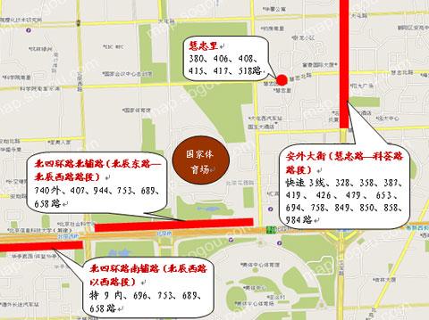 奧林匹克公園區開幕式公交專線落客及發車點、地鐵車站分布圖