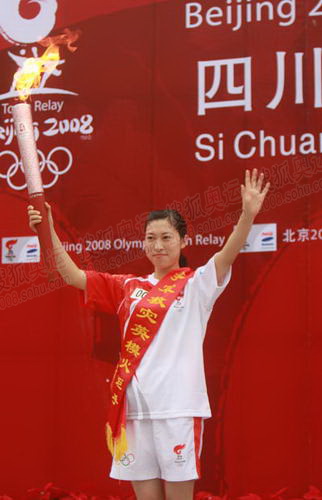 中國家喻戶曉的“抗震英雄”蔣敏擔任第一棒火炬手。“我會微笑,讓大家忘記悲傷,重新開始,因為我的家鄉依然美麗。”她說。