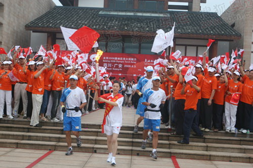 奧運火炬在鄧小平家鄉廣安開始四川境內第一站的傳遞。7.3公里長的火炬接力路線上,人們沿途揮舞國旗和奧運旗幟,高喊“奧運雄起,中國雄起,四川雄起”。“雄起”是四川方言,意為振奮起來。