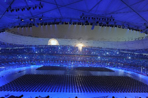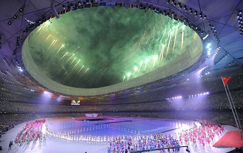 。玻埃埃改辏冈拢溉胀恚笗r整,隨著獨具民族特色的文藝表演徐徐展開,隨著喜慶的焰火沖天而起,全世界的目光都聚焦于北京,聚焦于“鳥巢”。