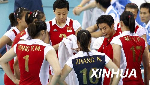 8月21日,中國隊主教練陳忠和在比賽暫停間隙為球員布置戰(zhàn)術(shù)。當(dāng)日,北京奧運會女排半決賽在首都體育館進行,中國隊以0比3負(fù)于巴西隊,無緣決賽。新華社記者凡軍攝